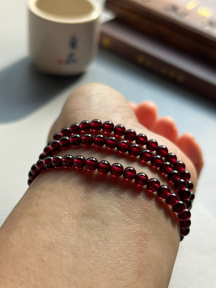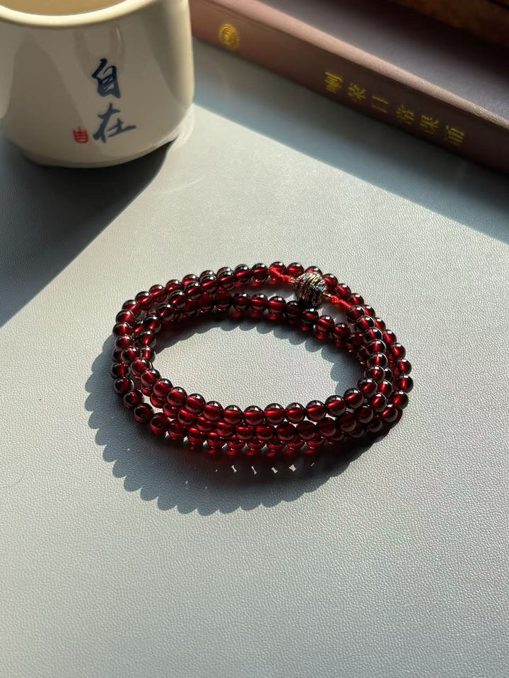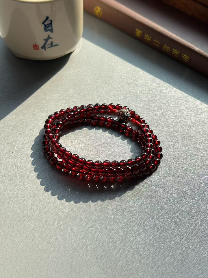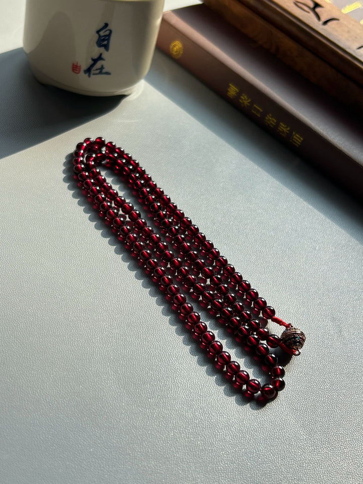 108 Pieces of Himalayan Natural Wine Red Pomegranate Crystal Prayer Beads